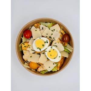 Salade Iceberg, blanc de poulet Halal, œuf dur, Grana Padano, tomates et croûtons, sauce à base d'anchois